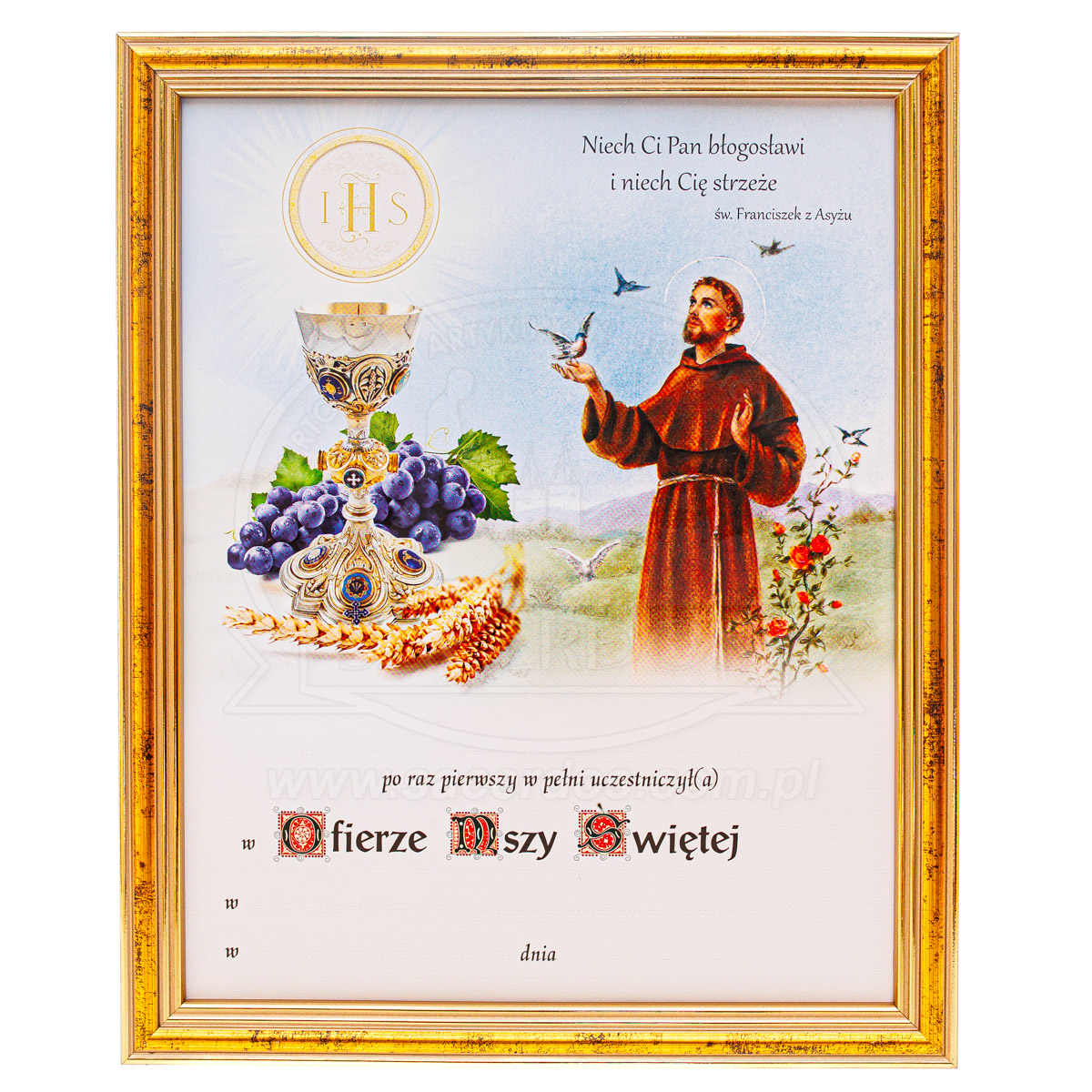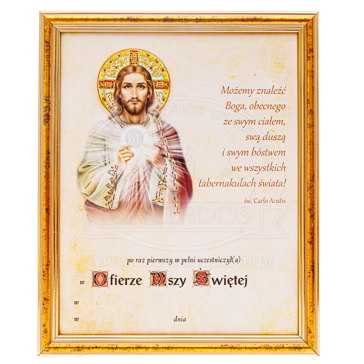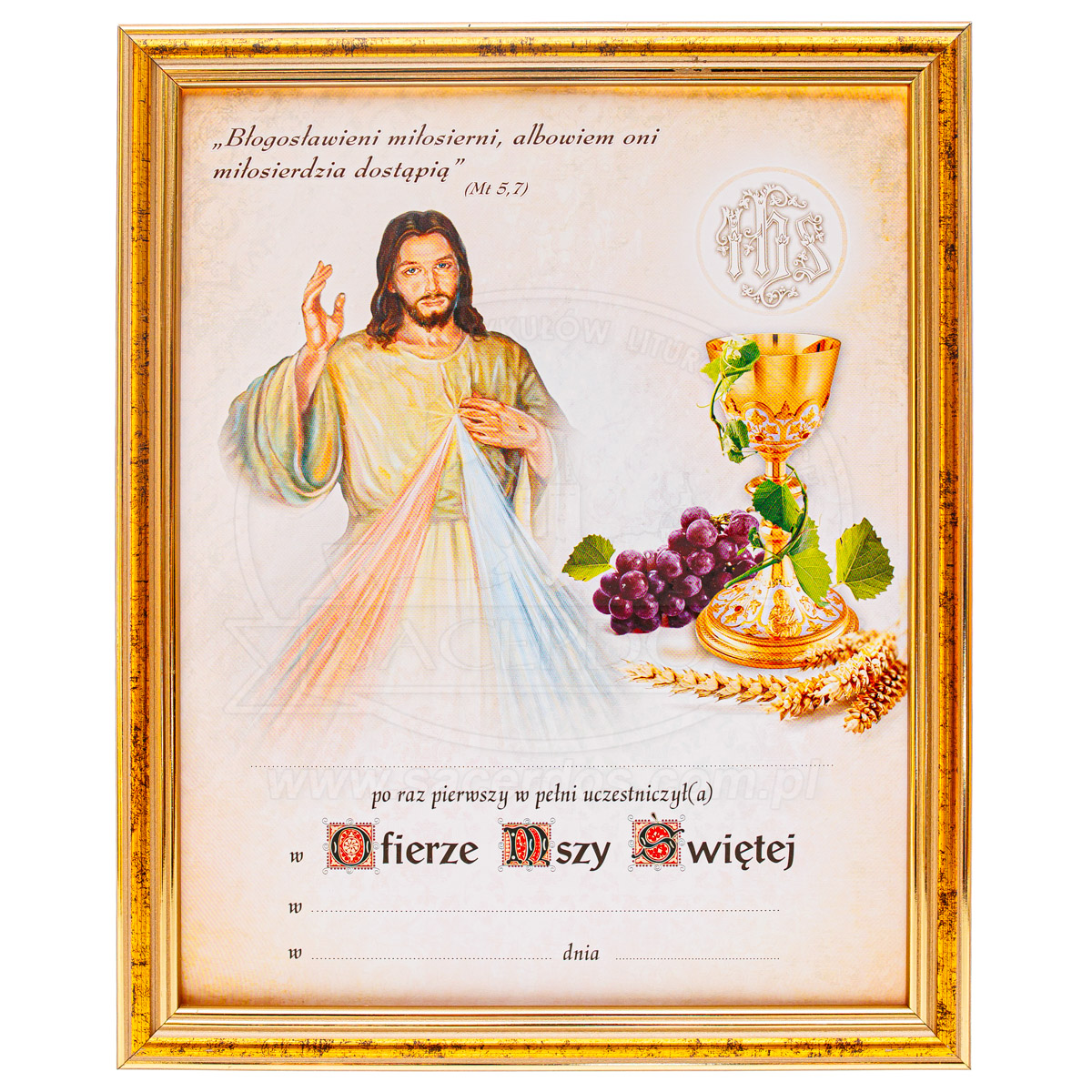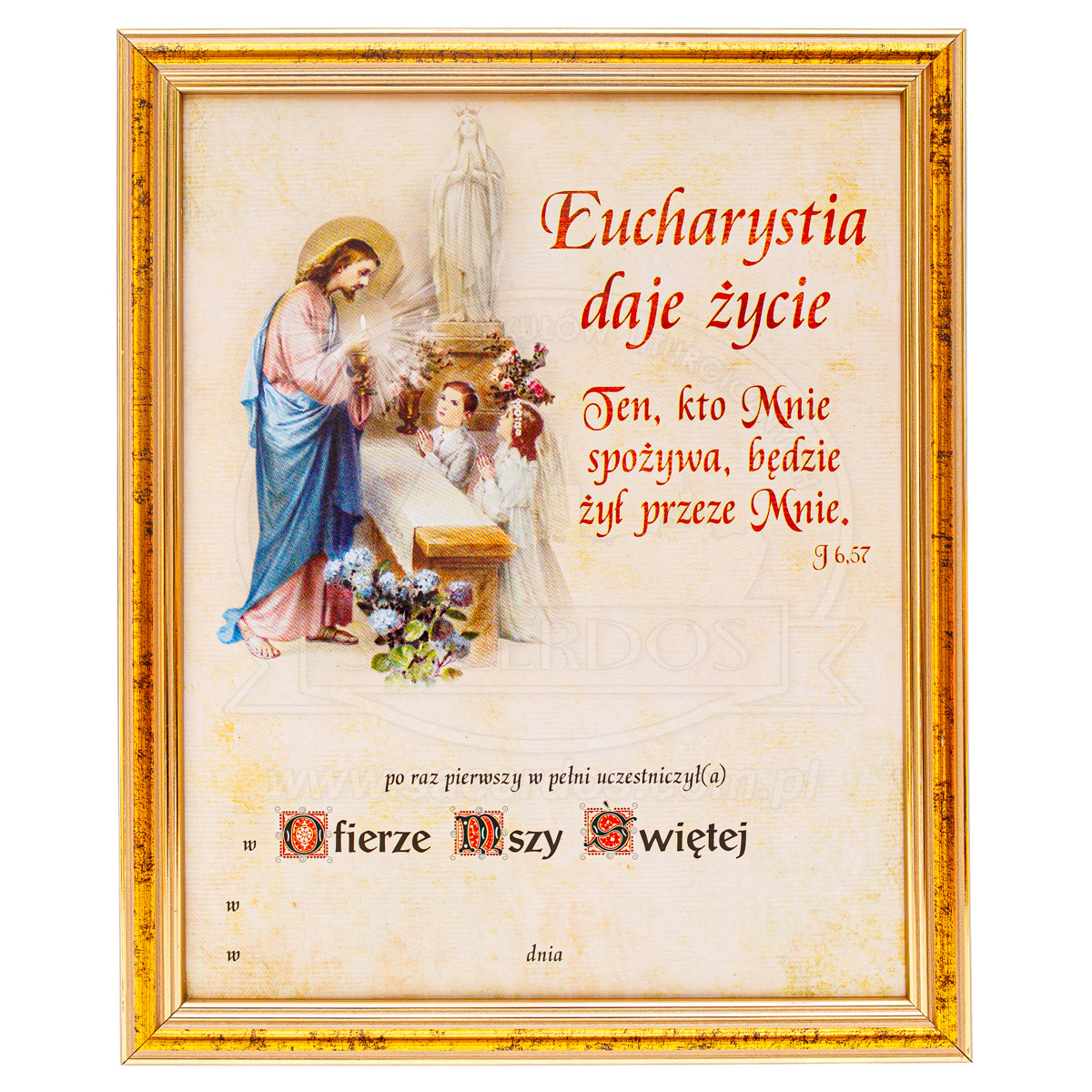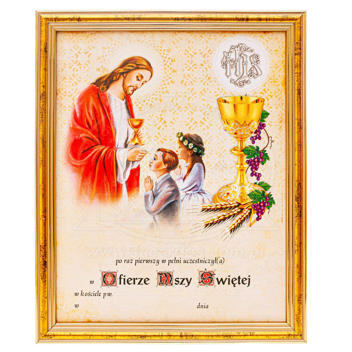 Obrazek pamiątkowy z ramką z okazji przyjęcia I Komunii świętej. Dostępne różne wzory grafik.